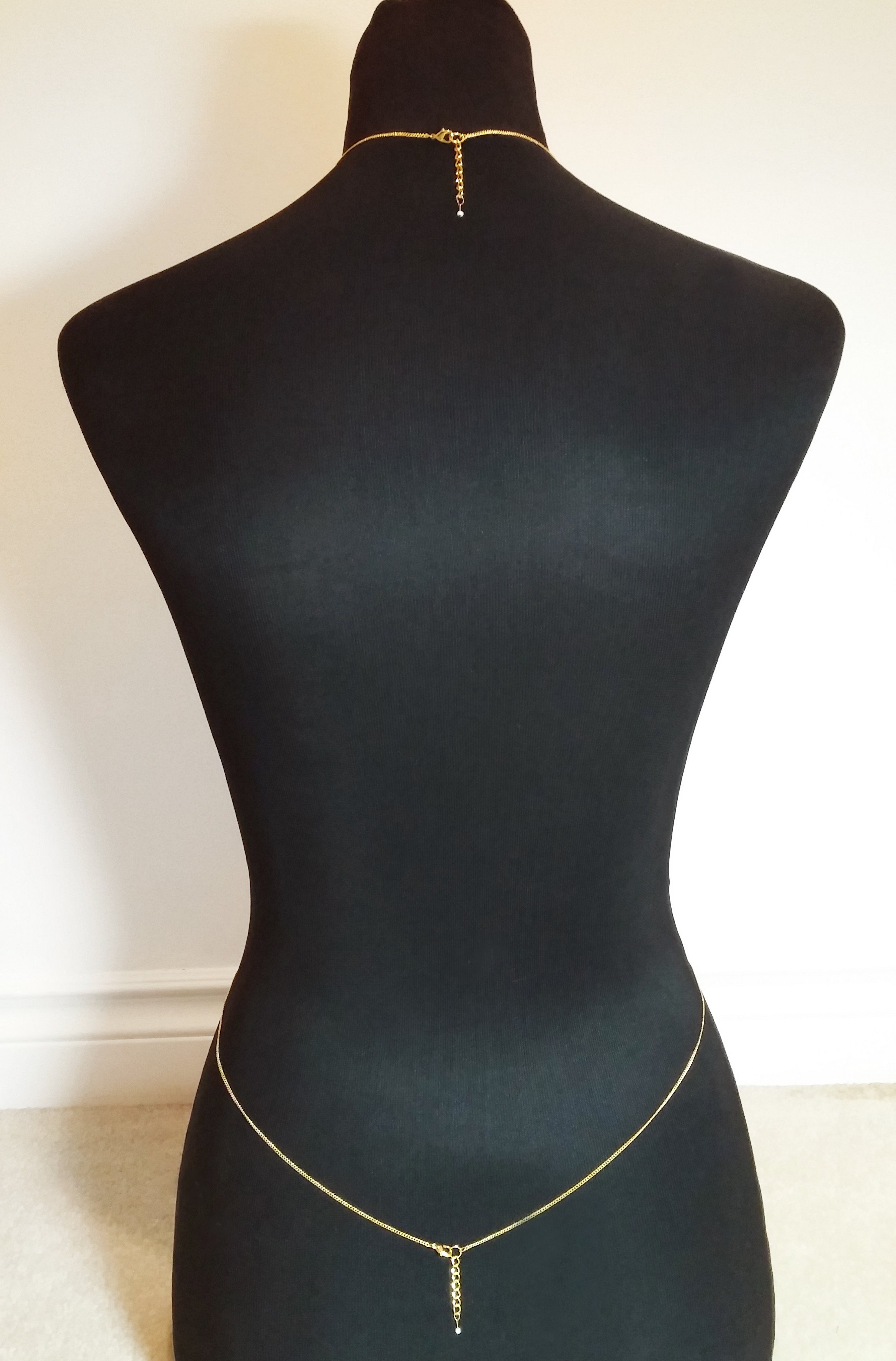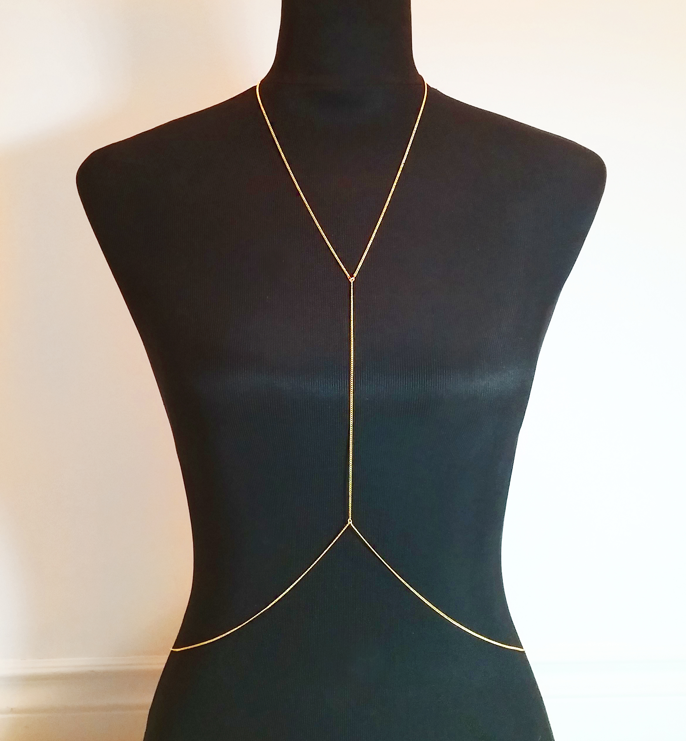 This piece, handmade by me, features gold plated chain. Perfect addition to your outfit or your bikini!