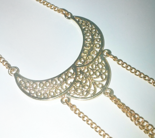 This piece, handmade by me, features gold plated chain.Make a statement with this one of a kind body chain!
