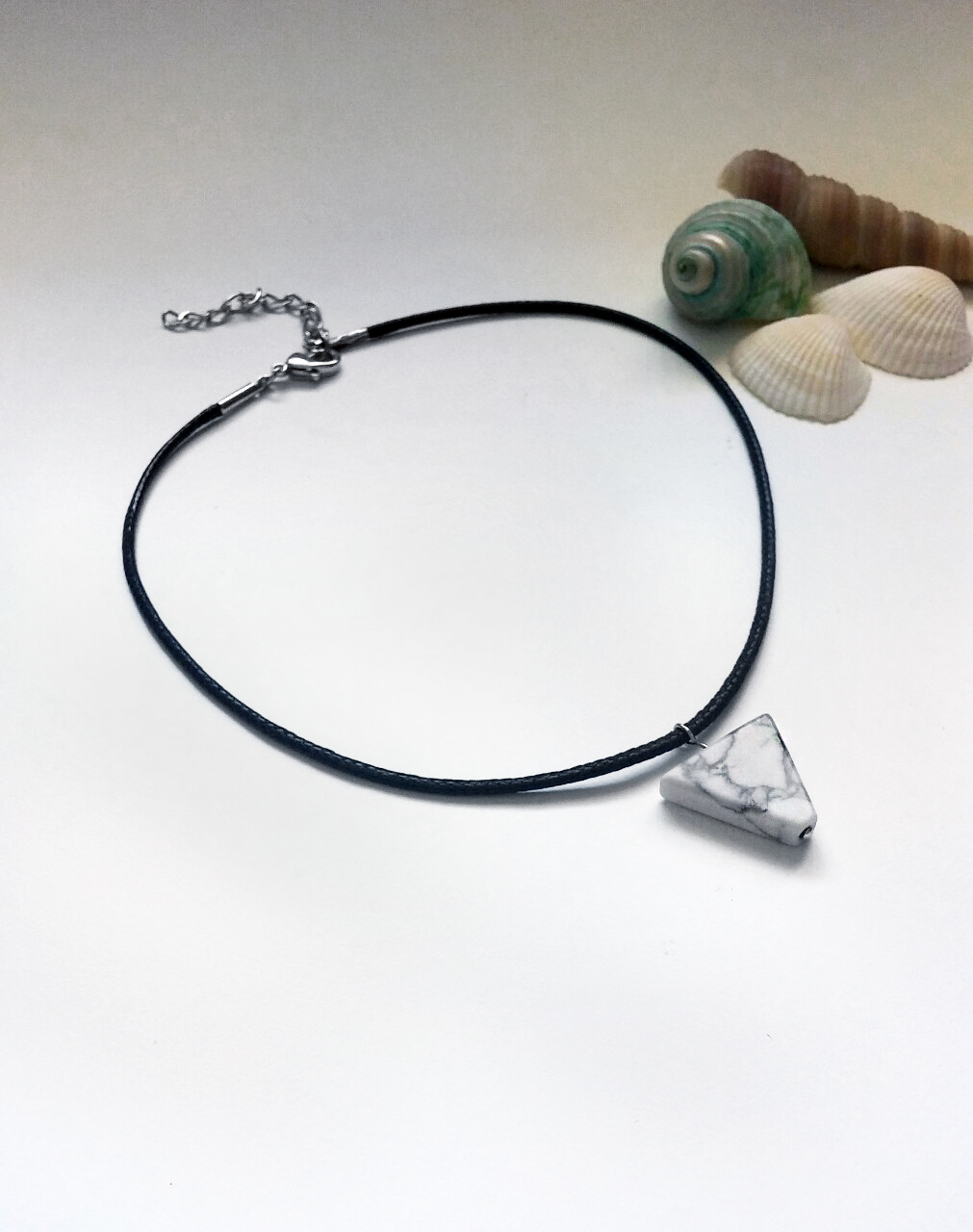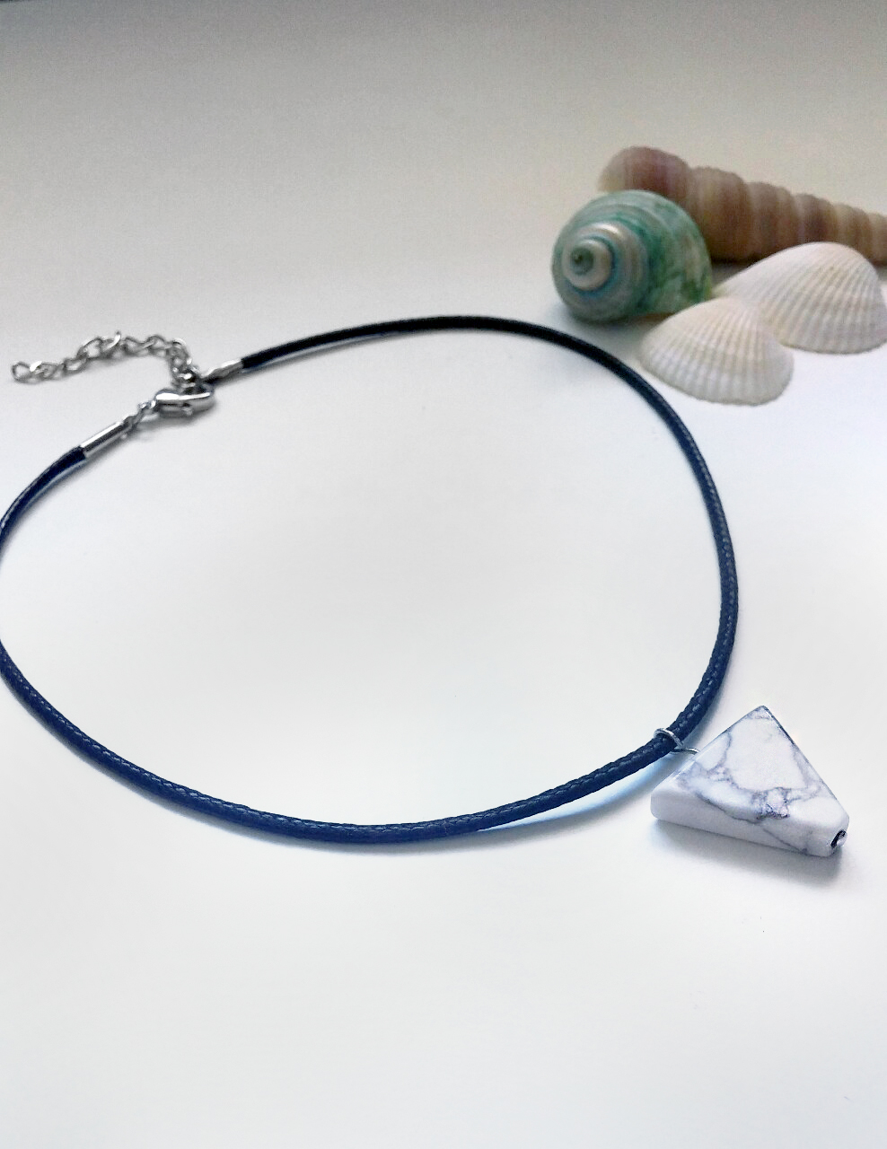 - Black cord with white howlite triangle pendant - Handmade and adjustable - Available lengths: 12.5" - 13.5" 14.5" - 15.5" 16.5" - 17.5"