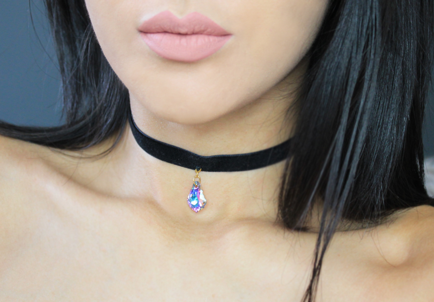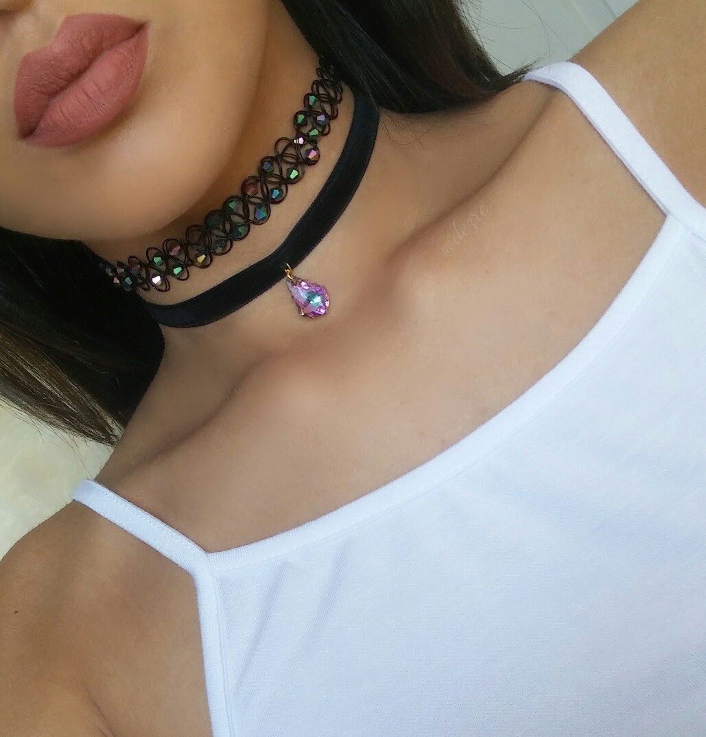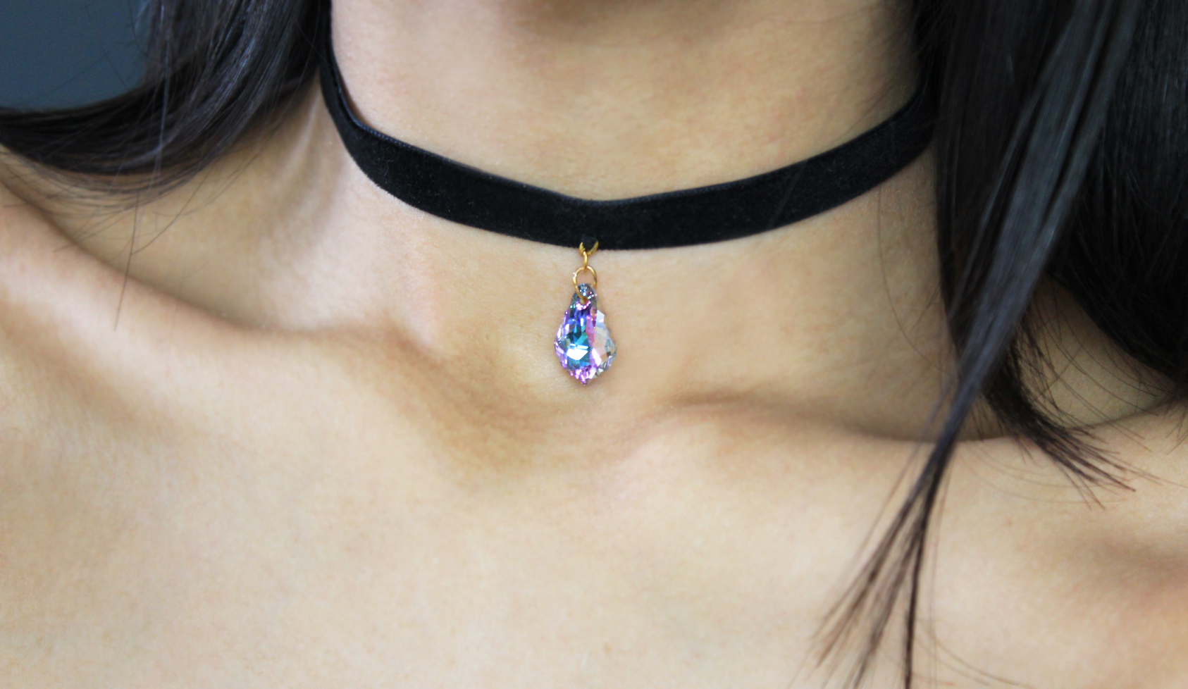 Adjustable and handmade Velvet Choker Swavorski Crystal Pendant (purple/blue) Antique gold finish Length: 12.5" - 15.5"