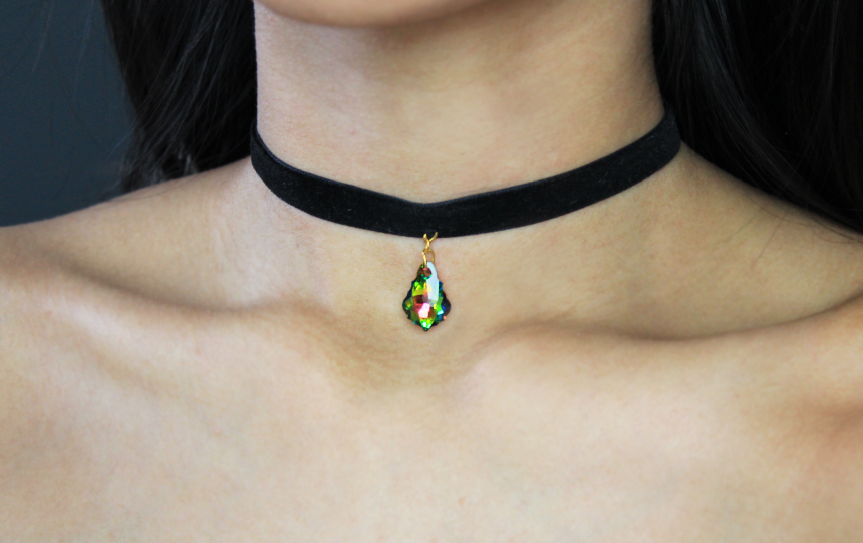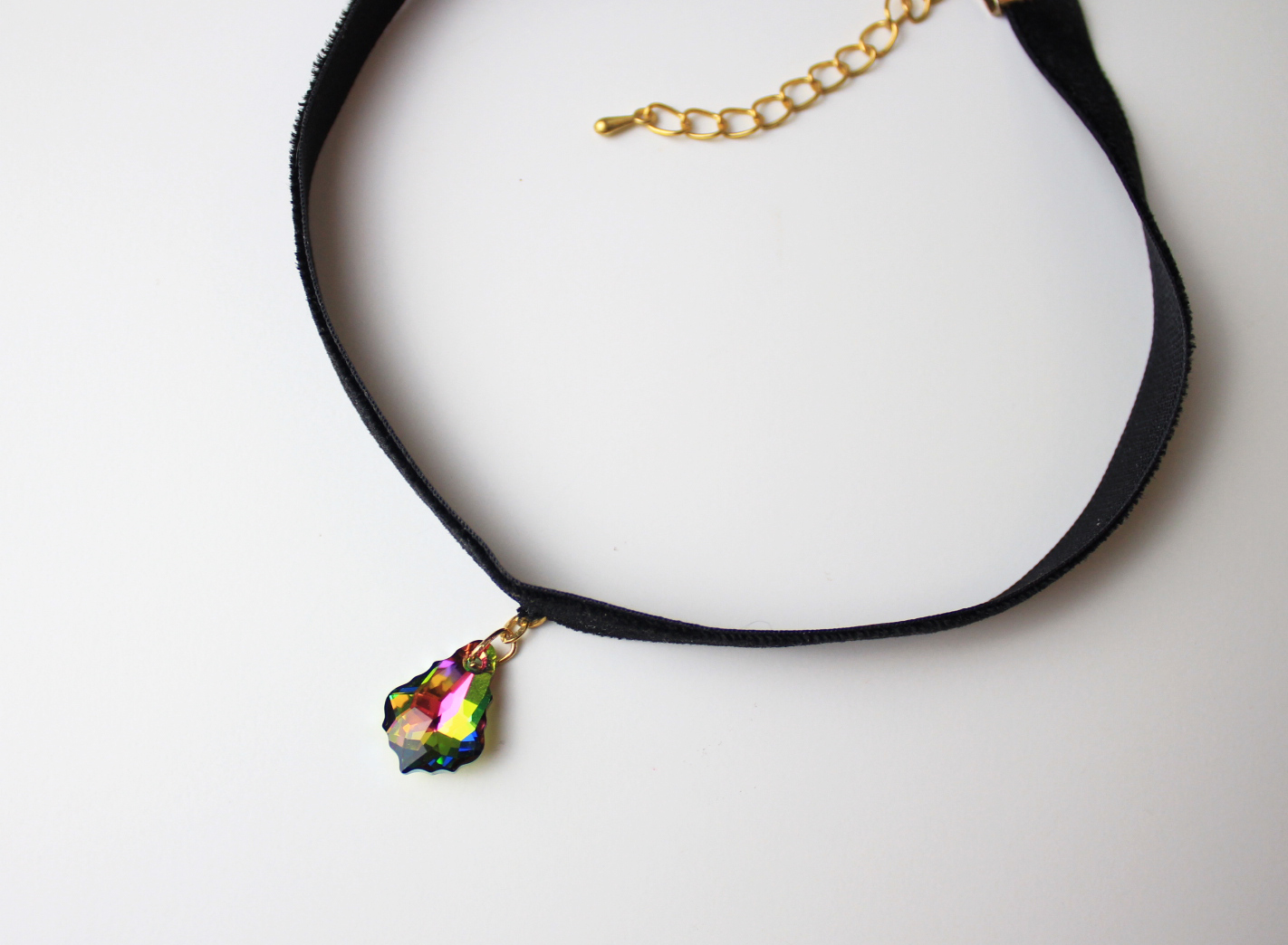 Adjustable and handmade Velvet Choker Swavorski Crystal Pendant Comes in gold or silver finish Length: 12.5" - 15.5"